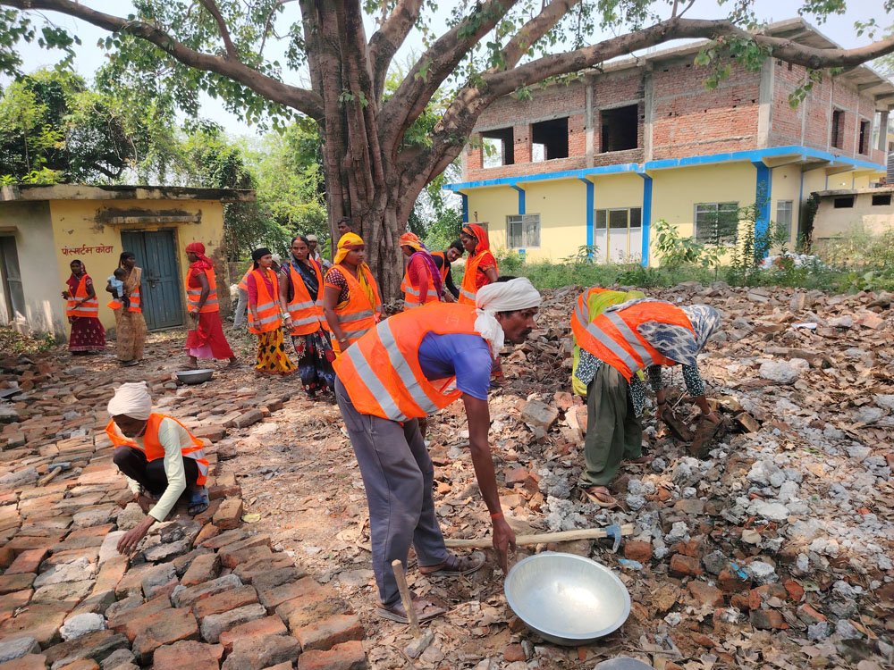 कपिलवस्तुको कृष्णनगर नगरपालिका अन्तर्गत बहादुरगन्ज अस्पतालमा मर्मतसम्भारको काम गर्दै प्रधानमन्त्री रोजगार कार्यक्रममा सहभागी भएका मजदुरहरु । तस्बिर: सनिउल्ला धोबी/रासस