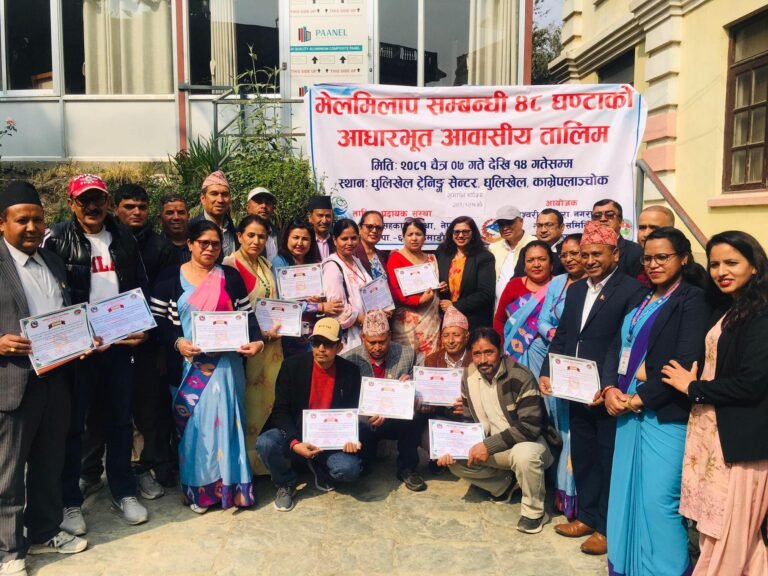 काठमाडौं । कागेश्वरी मनोहरा नगरपालिकाका २२ जना महिला तथा पुरुषले मेलमिलाप सम्बन्धि ८ दिने आधारभूत तालिम लिएका छन् ।