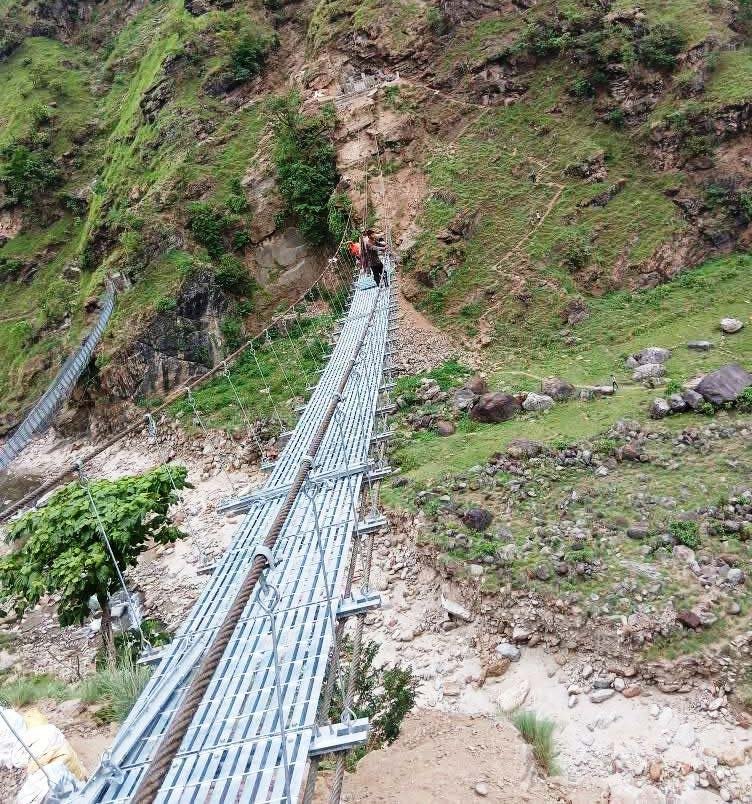 कालीकोट । कालीकोट जिल्लाको नरहरिनाथ गाउँपालिकाको वडा नं. १, ८ र ९ जोड्ने रहगाढको पुल निर्माण भएको छ । लामो समयदेखि झोलुङ्गे पुल निर्माण नहुँदा सर्वसाधारण तथा पशुचौपायाको समेत आवागमन कठिन थियो । स्थानीयको दबाबपछि बल्ल पुल निर्माण भएको र अबको यात्रा सहज हुने आशा गरिएको छ ।