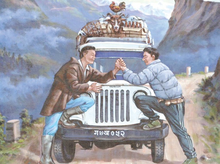 पेन्टिङ थिम पोस्टरमा दुई पात्रलाई एक सामान बोकन भ्यान अगाडी हातको पञ्जा जुधाई रहेको अवस्थामा प्रस्तुत गर्दै फिल्म निर्माणको घोषणा गरिएको हो।