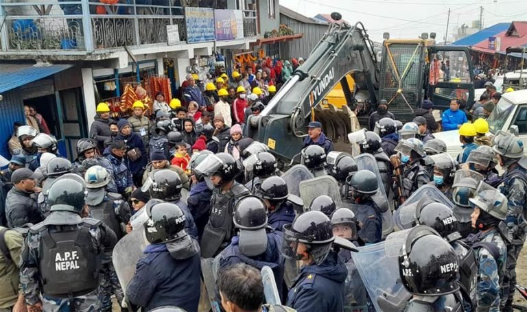 ताप्लेजुङ केवलकार निर्माणमा अवरोध : प्रहरी र आन्दोलनकारीबीच झडप, चार जना घाइते