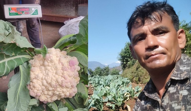 बागलुङका पदम खत्रीले यसपालि फलाए १२ किलोको काउली , भन्छन्- ‘विदेश जाने सोच कहिले पनि आएन’