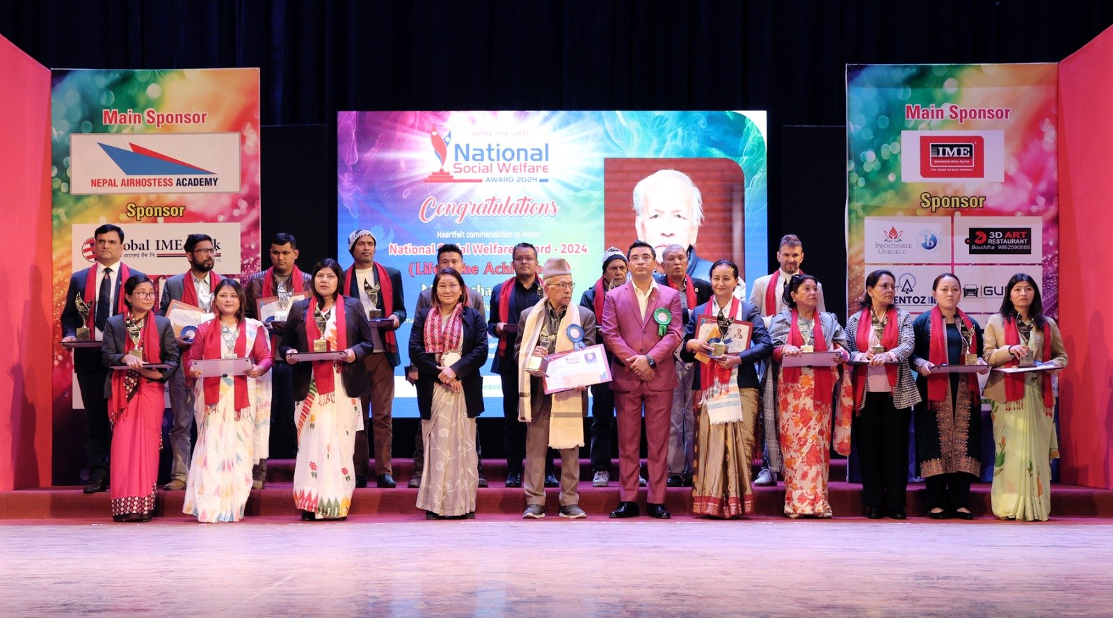 राष्ट्रिय समाजसेवा अवार्डबाट सम्मानित हुनेमा समाजसेवी तथा रक्तदाता संकलक अमृत नारायण मानन्धर समाजसेवी तथा लेखक, हरिराज शर्मा अर्याल (हराश) कपिलवस्तु , हिमालय वृद्धाश्रम केन्द्र गंगवुकी सरला पन्थी समाजसेवी इसा गुरुङ लण्डन , गाउँले पर्यटनका पथप्रदर्शक तथा घुमन्तेका सस्थापक कञ्चन राई समाजसेवी फुपुल्हामो लामा नयाँ परिवर्तन नेपाल महिला पुनःस्थापना केन्द्र धरानकी सस्थापक प्रतिभा थापा, मनमैजु माध्यमिक विद्यालयकी प्रधानाध्यापक रविना महर्जन , कानुन व्यवसायी राधिका खतिवडा, अक्सा नेपाली सस्थापक राइना व्यन्जनकार,अटिजम ‘विशेष स्कुल तथा पुनस्र्थापन केन्द्र’की सस्थापक सविता उप्रेती, सगरमाथा नेपालकी सस्थापक सावित्रीकुमारी अधिकारी, नेपाल युथ काउन्सीलका अध्यक्ष सरोज बानिया, चुरे बन जंगल संरक्षण बारा अभियानका सस्थापक सुनिल यादव , वरिष्ठ पत्रकार जन्मदेव जैसी, पर्यटन प्रर्वद्धक तथा उपहासचिव एनआरएनए आइसिसि सोम नाथ सापकोटा र जय नेपाल एनजिओका सस्थापक अल्वटो लुजिइ रोम लाई अवार्ड प्रदान गरीएको थियो ।