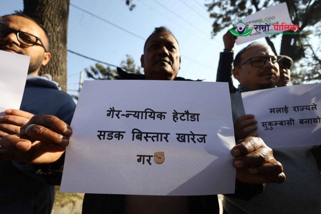 हेटौँडा सडक विस्तारका पीडितको माइतीघरमा विरोध प्रदर्शन (तस्बिरहरू)