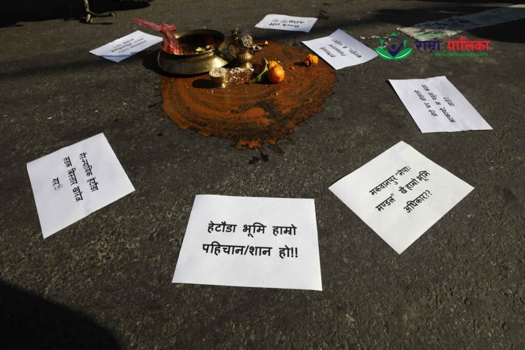 हेटौँडामा २५ गजको सडक सीमाभित्रका मुख्य बजार क्षेत्रका घर टहराहरू सरकारी पक्षले भत्काएपछि त्यहाँका स्थानीयहरूले प्रदर्शन गरेका हुन् ।