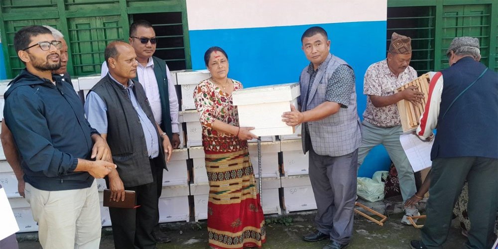 बागलुङको काठेखोला र तमानखोलाका कृषकलाई मौरीसहितका घार वितरण