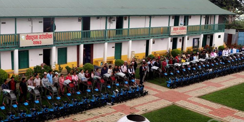 भोजपुरको पौवादुङमा गाउँपालिकाद्वारा किसानलाई कृषि औजार वितरण