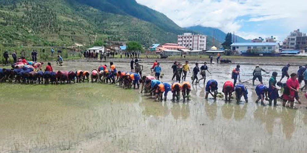 जुम्लाको शेरा खेतमा कालीमार्सी धान रोपाइँ